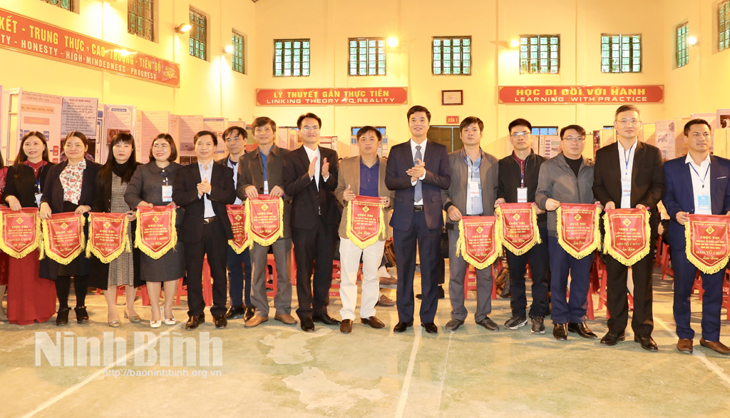 Lãnh đạo Sở Giáo dục và Đào tạo trao cờ lưu niệm cho các đơn vị tham gia Cuộc thi.