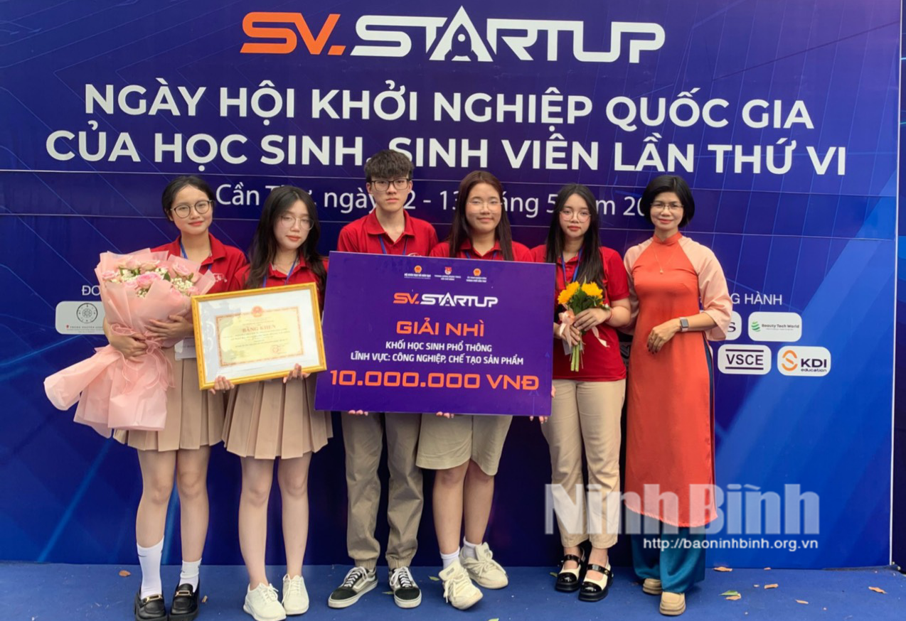 Trong 2 ngày 12-13/5, tại Cần Thơ, Bộ Giáo dục và Đào tạo phối hợp với Trung ương Đoàn Thanh niên Cộng sản Hồ Chí Minh, UBND thành phố Cần Thơ đã tổ chức Ngày hội khởi nghiệp Quốc gia của học sinh, sinh viên lần thứ VI. Nhóm tác giả 5 học sinh Ninh Bình giành giải nhì cuộc thi “Học sinh, sinh viên với ý tưởng khởi nghiệp” cấp quốc gia năm 2024.